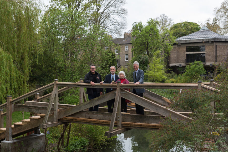 Originally two bridges to the islands were introduced by Sir George Darwin following his purchase of Newnham Grange as a family home in the 1880s, as recalled by his daughter Gwen Raverat in her memoir, Period Piece.